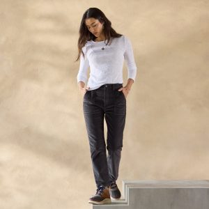Easy. medium wash straight leg pants. One button front and zip fly. Four pockets. Cotton/spandex. Machine wash. Imported. Sundance exclusive. Sizes 24–32. 27 inseam; 11 1/2 rise; 14 3/4 leg opening