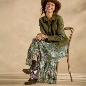 Sure. our Rhodes Jacket is technically a utility jacket. But there’s nothing basic about its trim. flattering fit—or the delicate tonal embroidery over the front patch pockets. down the sleeves and across the back yoke. Love this design? Check out the Rhodes Pants! Cotton/rayon. Machine wash. Imported. Exclusive. Sizes XS (0-2). S (4-6). M (8-10). L (12-14). XL (16-18). XXL (20-22). Approx. 21l.
